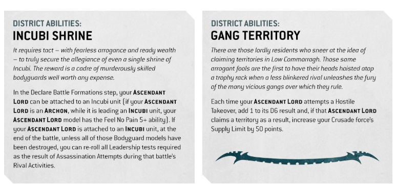 Gang Territory feeds your takeover engine. Each Hostile Takeover attempt gets a flat bonus to the crucial D6. Moreover, any successful claim from that attempt increases your Crusade Supply Limit by fifty points. Therefore, the low streets bankroll your expansion while you climb the spires. It is dirty work, and it absolutely pays.