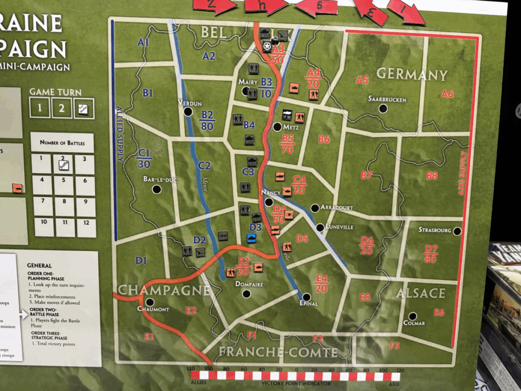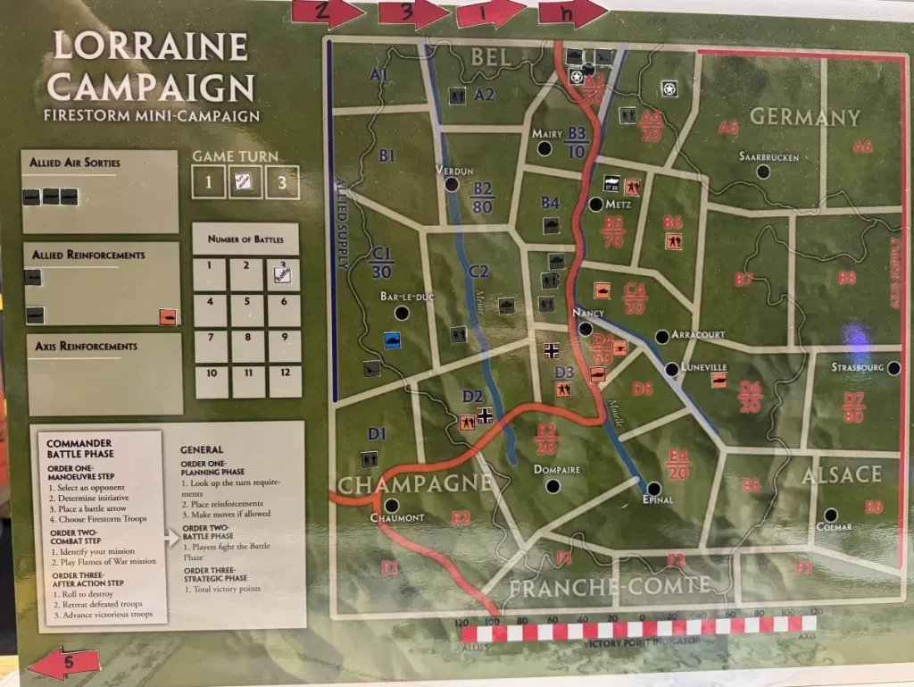 This was actually a lot closer then it looks, even with the allies going a paltry 6-10, we were still one 5+ or 2 3+’s from getting a straw or even sneaking out a win. We decided the allies could get one last attack as a chance to tie the campaign for our final group game to close out the campaign: The Battle of Metz.