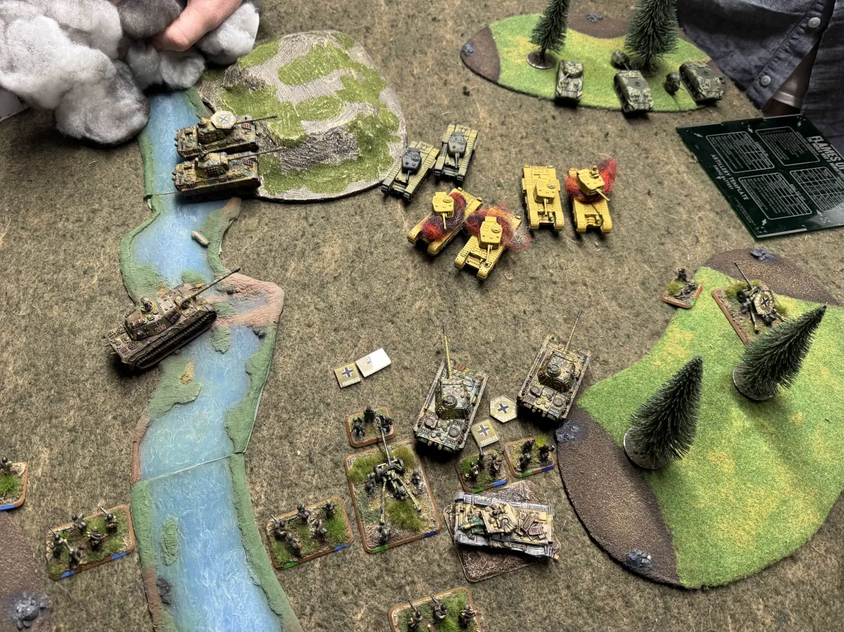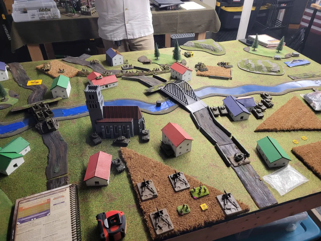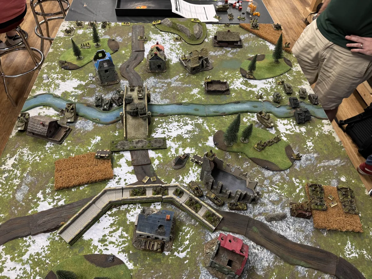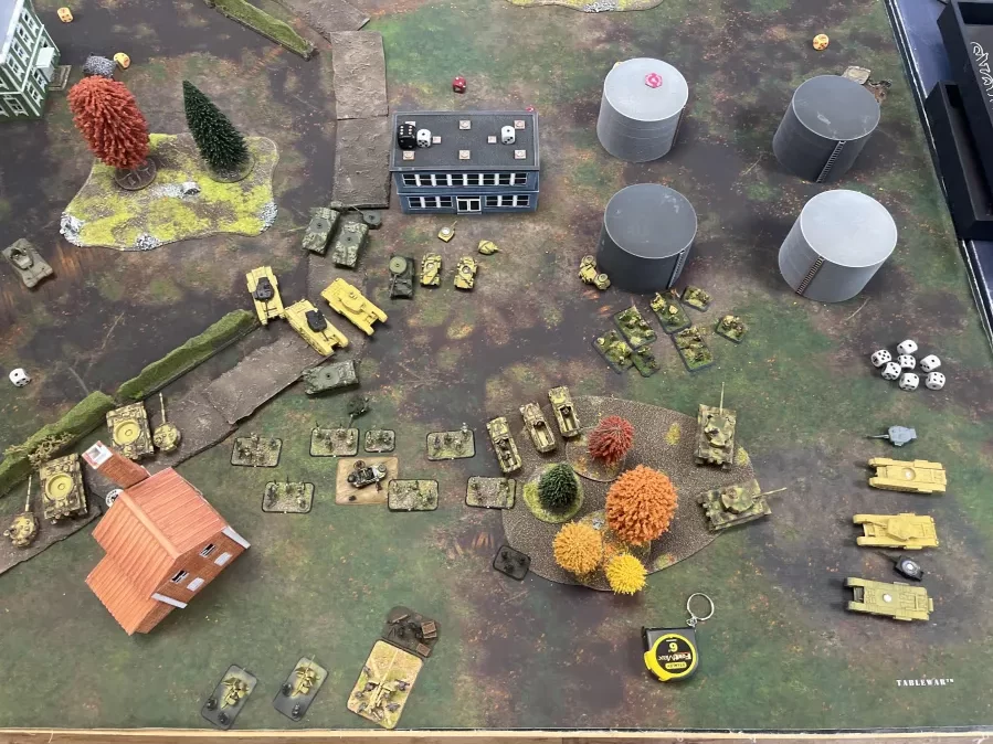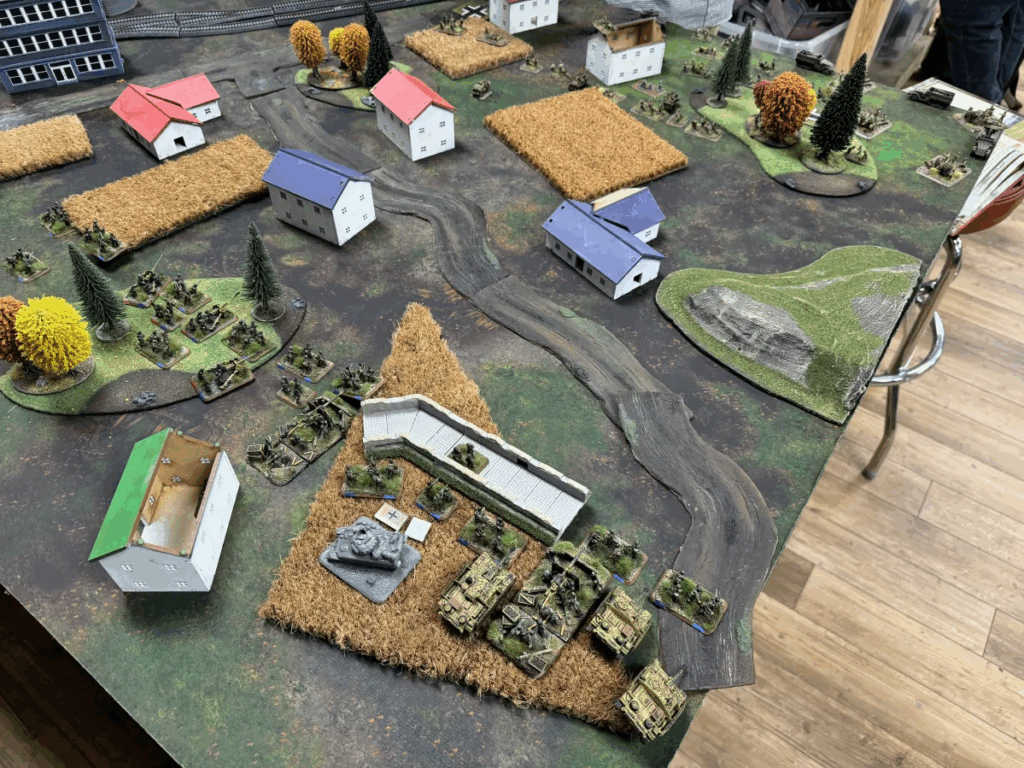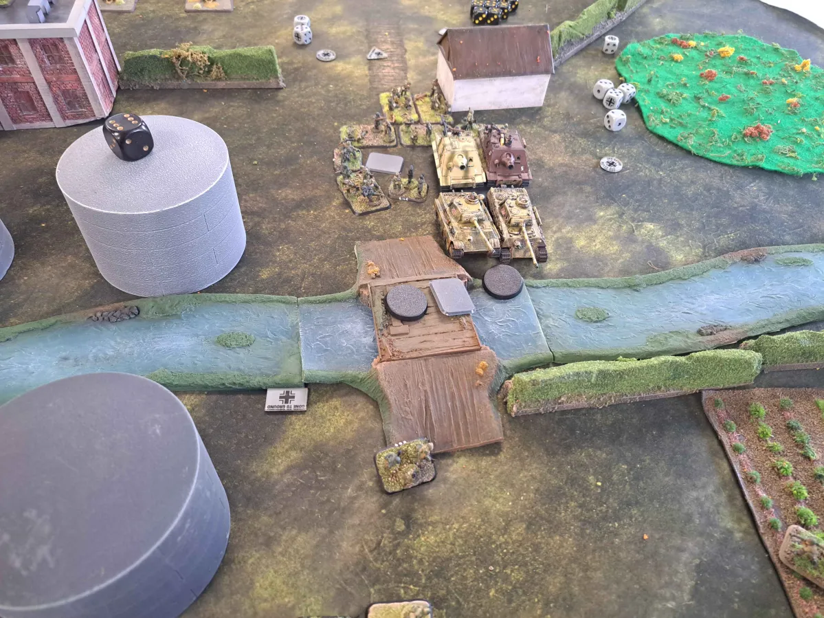 This was largely due to the German player getting one of their tiger tanks bogging down while trying to escape from an allied assault. This loss forced the German player to roll a company morale test which he promptly failed. Easily one of the funniest ways to lose a game that I have see.