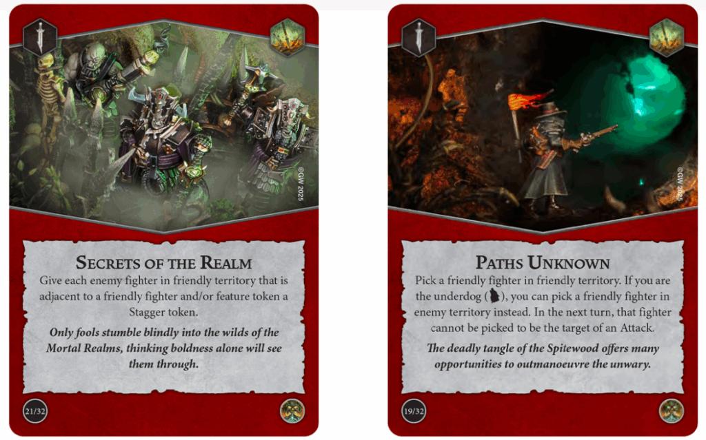 Both decks are plug and play, yet they reward careful sequencing and board awareness. Hunting Grounds turns your half into a trap-laced kill box with pushes, staggers, and safe attacks. Meanwhile, Deadly Synergy transforms adjacency into mitigation, mobility, and weapon tricks. Consequently, Spitewood adds two polished game plans that feel great with new or legacy warbands. If you like winning fights by positioning first and rolling dice second, these decks deliver.