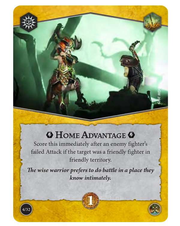 Additionally, Deny Invaders pumps all your Attack dice while you hold home ground, turning every charge lane into a blender. Paths Unknown can make a key fighter untargetable next turn, and if you are the underdog it can even protect one in enemy territory.