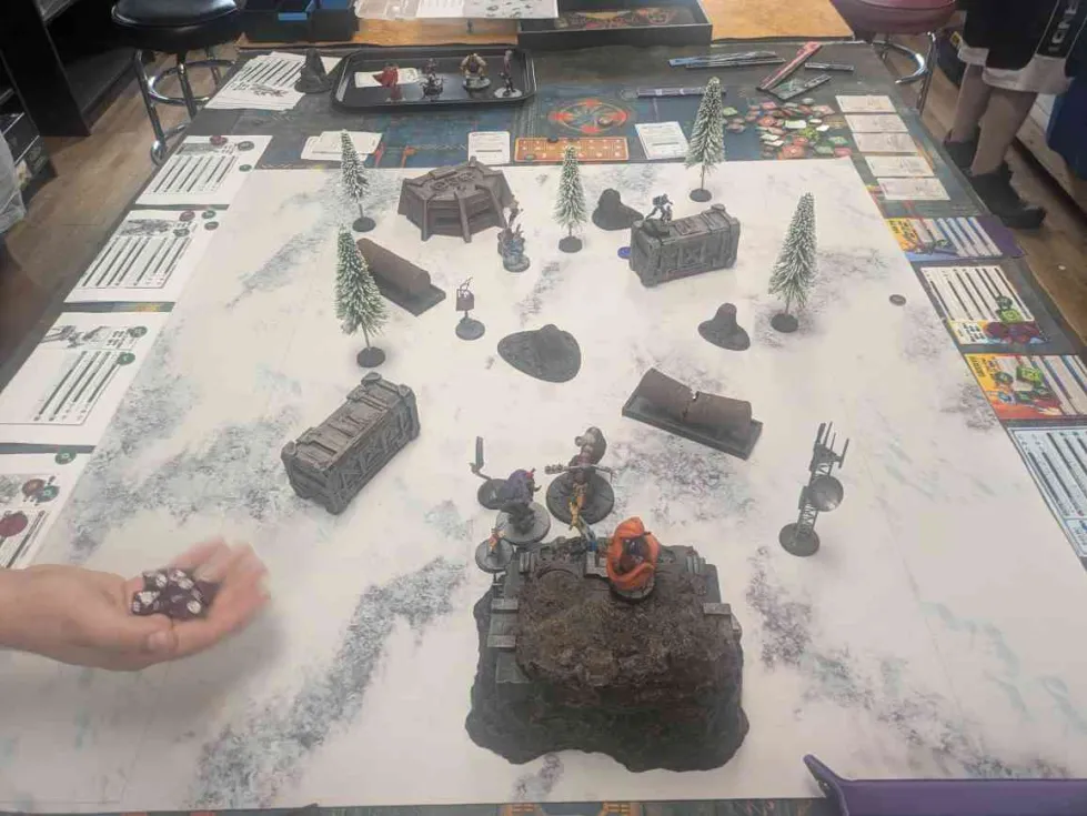 On the other flank Rogue had an exceedingly great turn where she was able to charge into her Builder and Daze my Zemo then Spender and Daze my Black Bolt. Neither of them had activated at the time. While my opponent scored that side of the board with Rogue, I was stopping my opponent from Contesting the other Secure because I had moved it up onto the Weapon X bunker where his models had no place to go next to the ones I already had up there. This ended up being very frustrating for my opponent and I definitely see why. This piece of terrain is pretty unique and does allow for some base blocking.