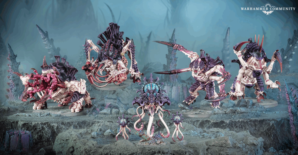 Tyranid players get the Crusher Stampede, which is pure kaiju energy. A Neurotyrant with two Neuroloids anchors synapse, while a Screamer-Killer, a Tyrannofex that can swap to Tervigon, a Haruspex that can build as Exocrine, and a Maleceptor that can become a Toxicrene deliver ridiculous threat saturation.