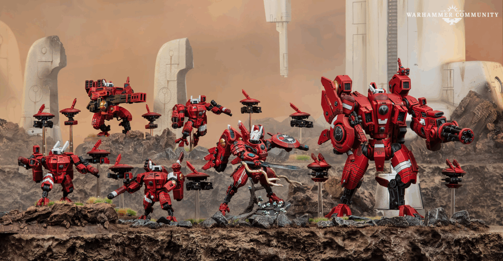 Meanwhile, the Farsight Cadre turns the T’au up to eleven with Commander Farsight, a Riptide with nova tricks, a Broadside with rail or missile options, three Crisis suits with flexible loadouts, eight drones, and an infantry transfer sheet.