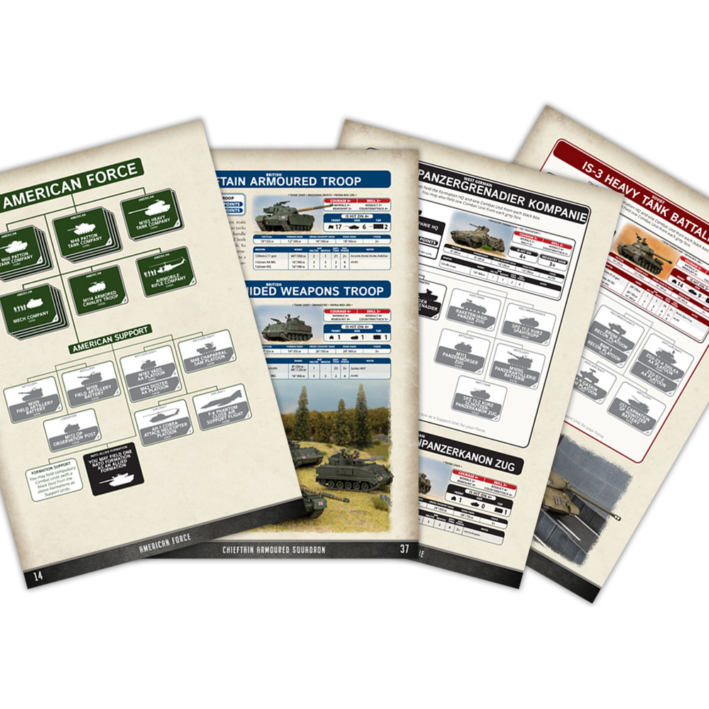 Battlefront is staggering the Starter Force releases. First up is the M48 Patton Tank Company on October 25. Then the Centurion Territorial Armoured Squadron hits November 8. Next the Leopard 1 Panzerkompanie lands November 15. Finally the T-10M Heavy Tank Battalion arrives November 22. Meanwhile, the PDF itself becomes available October 24.
