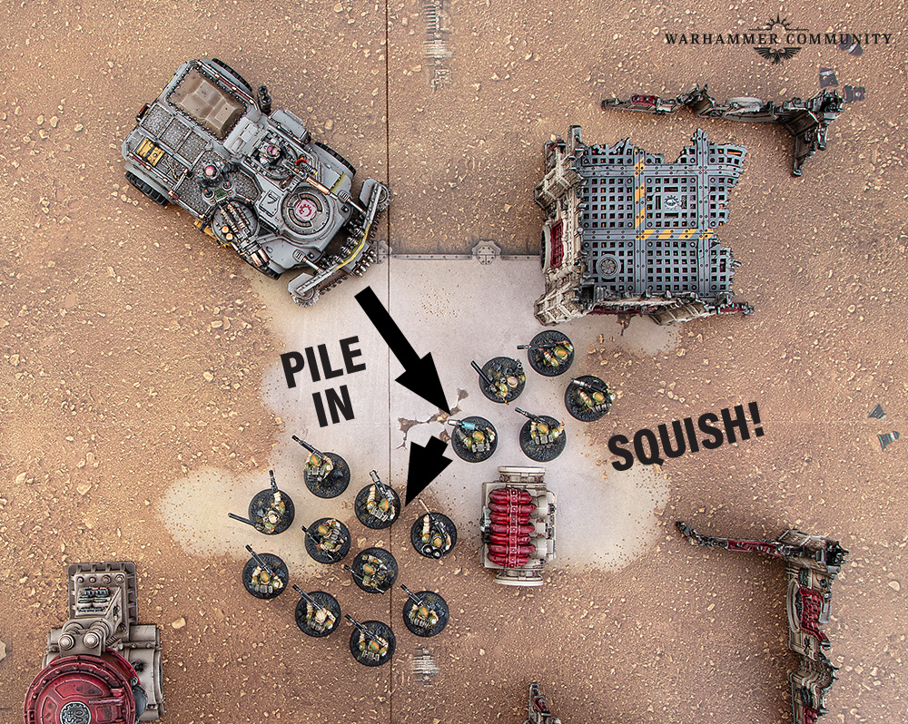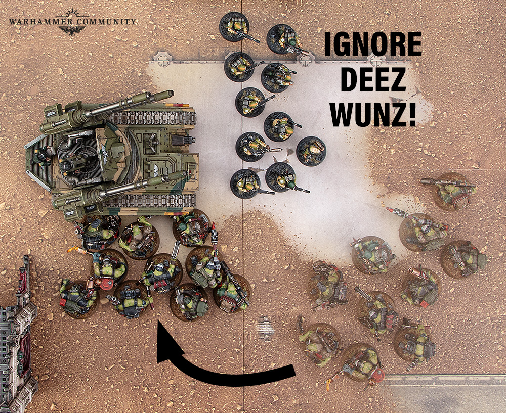 Order of operations wins combats before dice roll. For example, the Ork player should charge the Deff Dread first. Consequently, it soaks Overwatch and leaves space for Warboss and Meganobz. Moreover, that spacing lets everyone Pile In 3 inches and swing. If you flip the order, you can literally block yourself out.