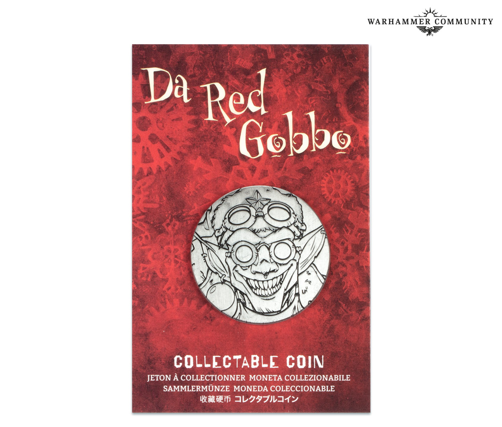 This is part of the ongoing Miniature of the Month program at Warhammer stores. It is a legit free model, while stocks last, with a cheeky theme. Moreover, the Red Gobbo has jumped the queue and his festive coin is live already.