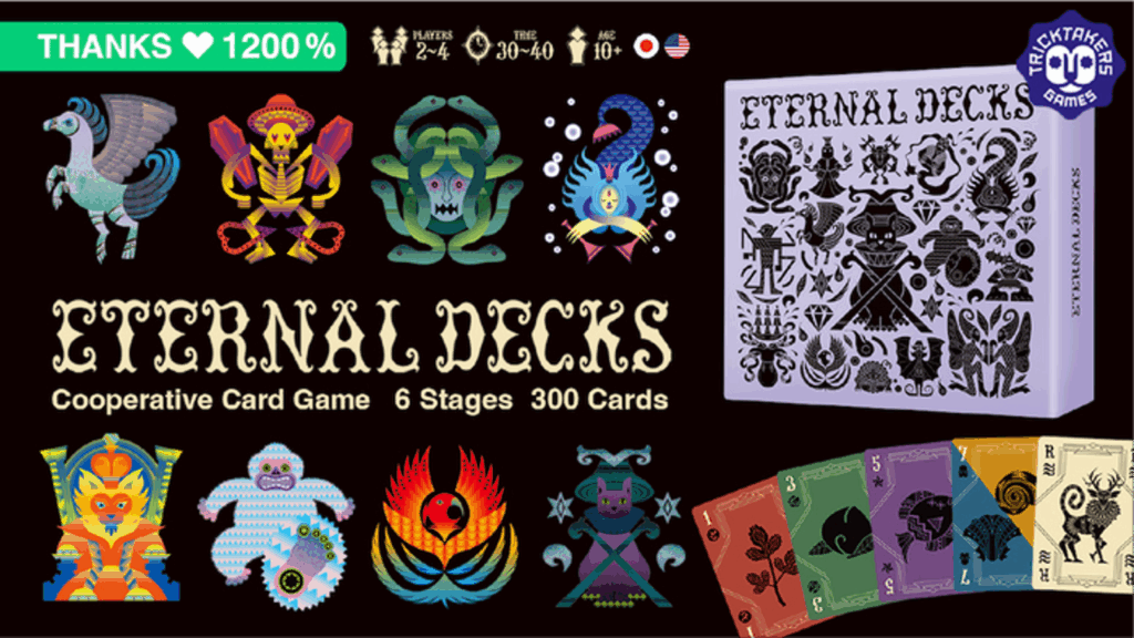 Eternal Decks invites players to work cooperatively through evolving “stages,” each requiring completion before a player runs out of moves.