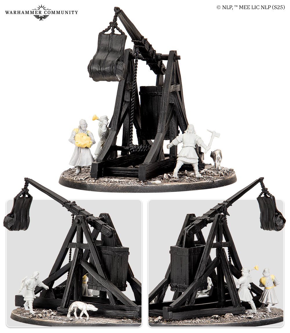 Importantly, Lewis has gone hard on characterful conversions. Both his Gondorian and Númenórean kings are converted, with the foot versions being his favourites. In his mind’s eye, the Númenórean king holding a Palantír is actively communicating with the Gondorian king in a time of crisis, while the mounted versions show them in full warlike fury. Additionally, he has taken the chance to build a little story around his trebuchet by converting some Lake-town Militia as extra crew, standing alongside the “official” crew who will actually hit the table. Consequently, the war machine feels more like a tiny diorama than just a single entry on an army list.