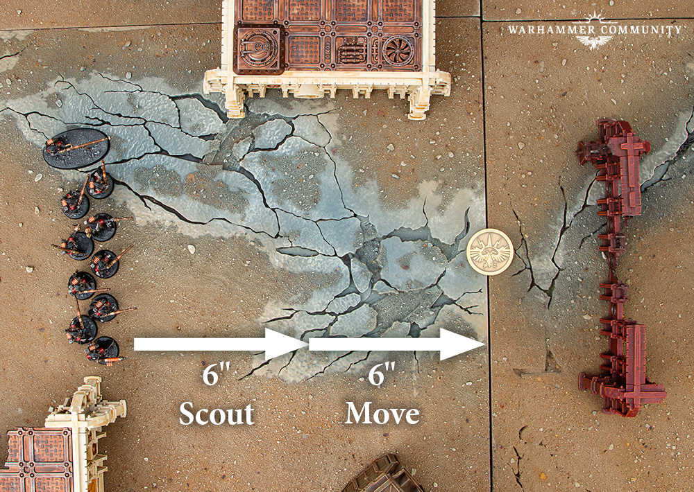 First up, they realise Dan has straight up missed some key rules. Skitarii Rangers have Scouts 6″, which he had completely ignored because he was treating them as backfield gun platforms. Suddenly, Stephen points out that with Scouts, normal move, and an Advance, they can threaten an 18″ push turn one.