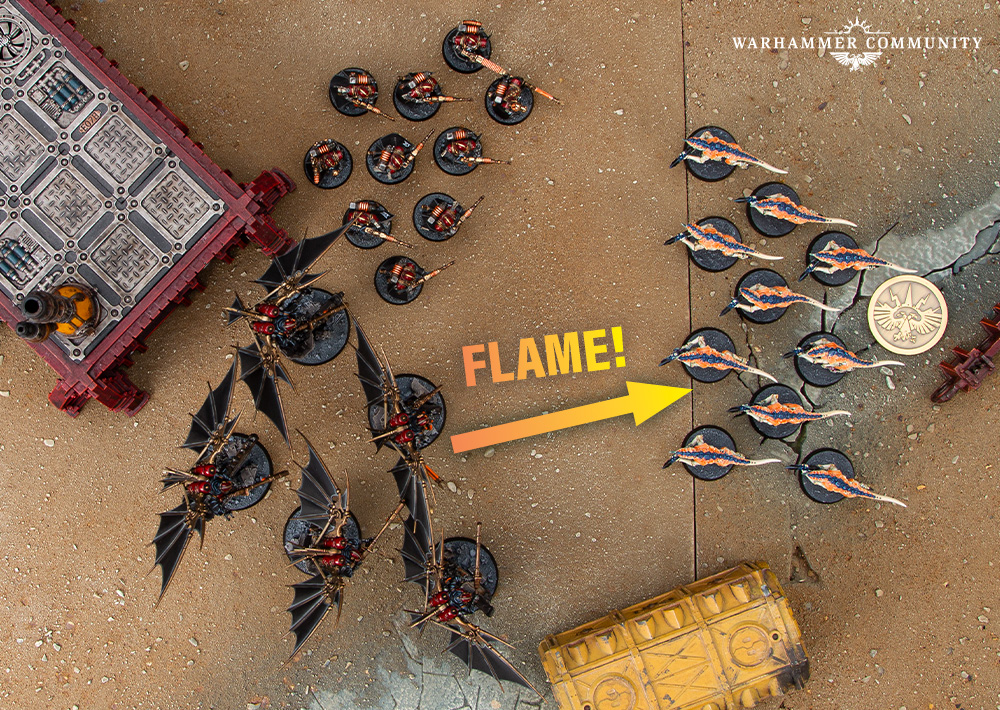 Therefore Dan starts considering Conqueror Imperative instead. With this choice, his infantry can Advance into the midboard to score Tactical Missions while still taking long range pot shots with extra AP. Rangers jump to an effective range of 48″, Vanguard reach 30″, and while the volume of fire will not table anyone, it can force Battle shock tests and chip the enemy. As a result, the army stops trading movement for firepower quite so brutally.
