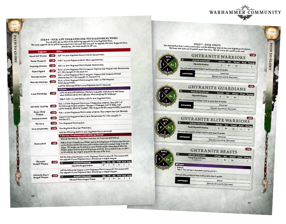 There is apparently a lot of depth here, so much that a single preview cannot cover it all. To see the full spread of options for Regiments of Ghyran, you will need the book itself. Path to Glory: Blighted Wilds goes up for pre order this Saturday, so the wait is short.