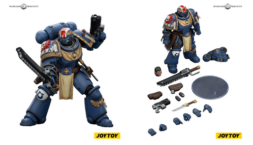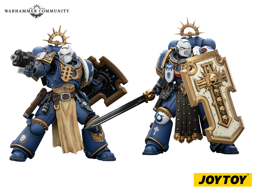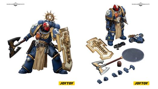 Titus returns to the JOYTOY range with his updated wargear from the animation. He sports fresh laurels of victory and that very distinctive sorcerer splitting combat knife. You can practically hear the psychic screaming just looking at it. Metaurus, meanwhile, turns up in full Bladeguard glory, hefting a huge power axe and ornate shield. Additionally, you get the choice of helmeted or bare headed, depending on whether he is pulping cultists or recovering from Chaos inflicted hurt.