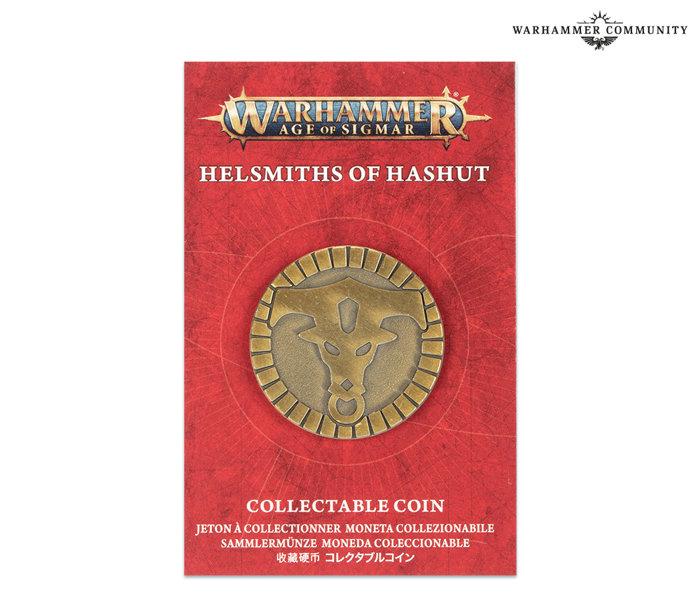 If your heart belongs to fire and brass instead, there is something for you too. Players who picked up the Infernal Cohort miniature last month, or anyone with a growing Zharrdron force, can chase a Helsmiths of Hashut coin. These coins are also available from the 6th of December, again only while stocks last. Additionally, you just need to ask your local store team how to qualify and they will walk you through it.