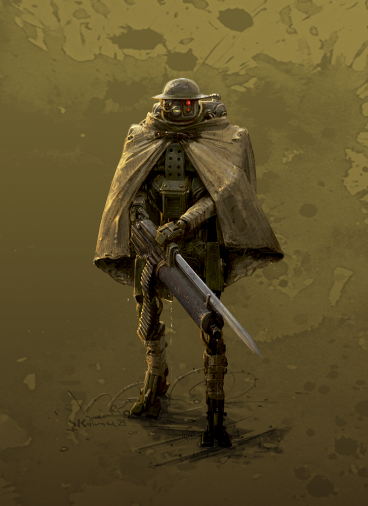 Kris calls Mk II Heavy Automated Infantry simply Mk IIs for clarity. They are the refined workhorse that delivers accurate, repeatable fire at ranges most infantry cannot contest. They run a rules package built for that job. Augmented, Large, and Wide Formation help them bring guns to bear. Fearless and Hard to Kill keep them around longer than you expect. Computational Systems plus Lumbering creates that slow, inevitable march that still keeps shooting.