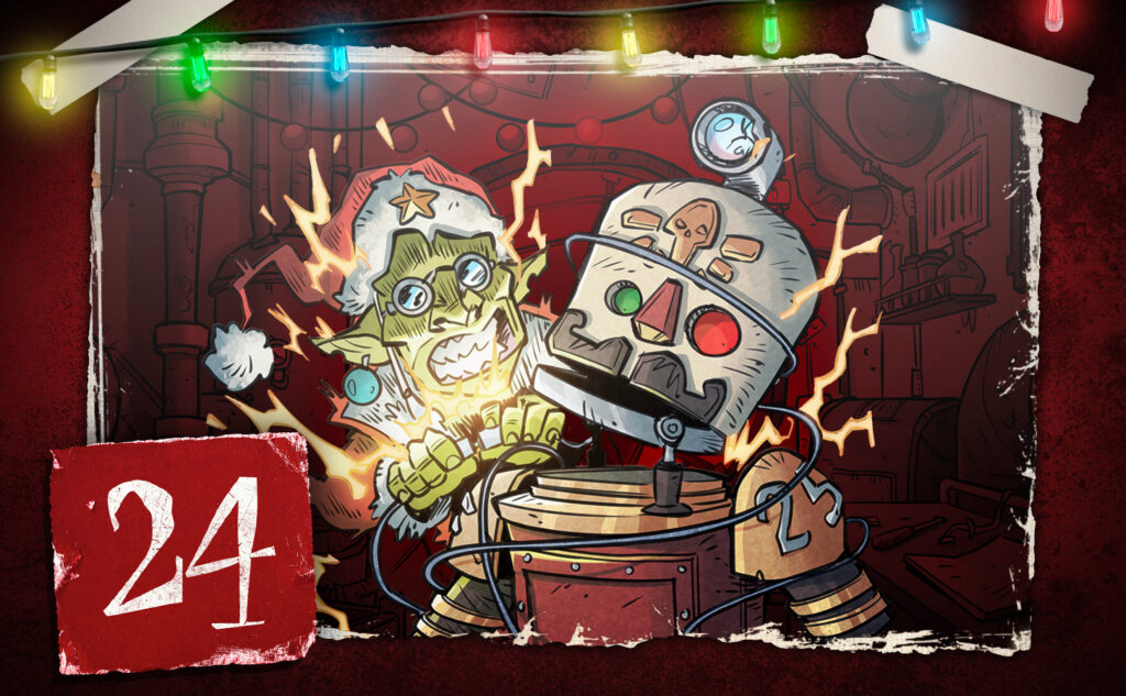 The battleplan splits rewards by attitude. The nice player gains a defensive benefit while protecting Da Red Gobbo. Meanwhile, the naughty player gets weapon buffs for bringing the pain. Da Red Gobbo also barely understands the suit, which is very on brand. Therefore, his progress is random, and his button bashing triggers wild effects.