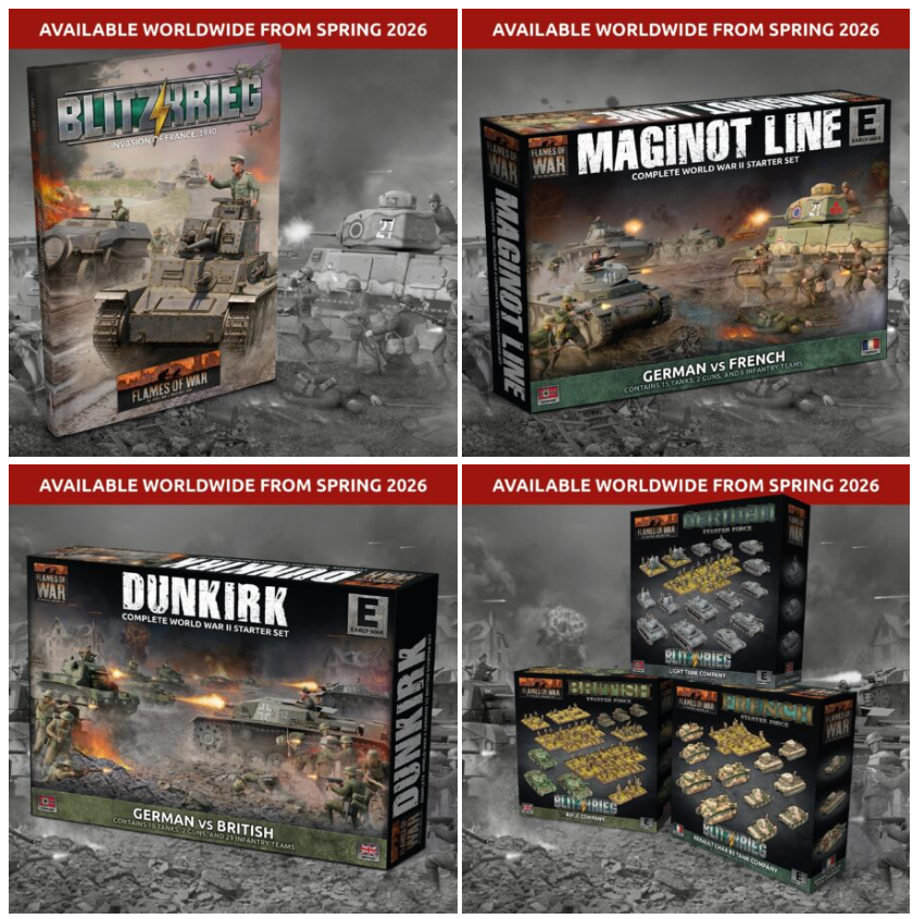Overall, Blitzkrieg: Invasion of France, 1940 looks like a confident relaunch of Flames of War’s Early War era. It combines a comprehensive hardcover book with starter products that lower the barrier to entry. Therefore, if you enjoy historically grounded games with plenty of character and asymmetry, this release is absolutely one to watch as February 2026 approaches.