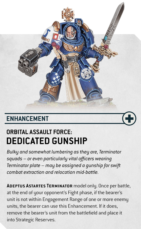 Movement tricks show up again in the Enhancements. So, you see Scout, redeploy options, and charge rerolls on arrival. Additionally, Terminators get a cool mobility moment too. Dedicated Gunship lets a Terminator character pull their unit off the board once per battle. However, it only triggers after your opponent’s Fight phase, and only if you are not in engagement range. Then you go into Strategic Reserves, ready to hit another angle later.
