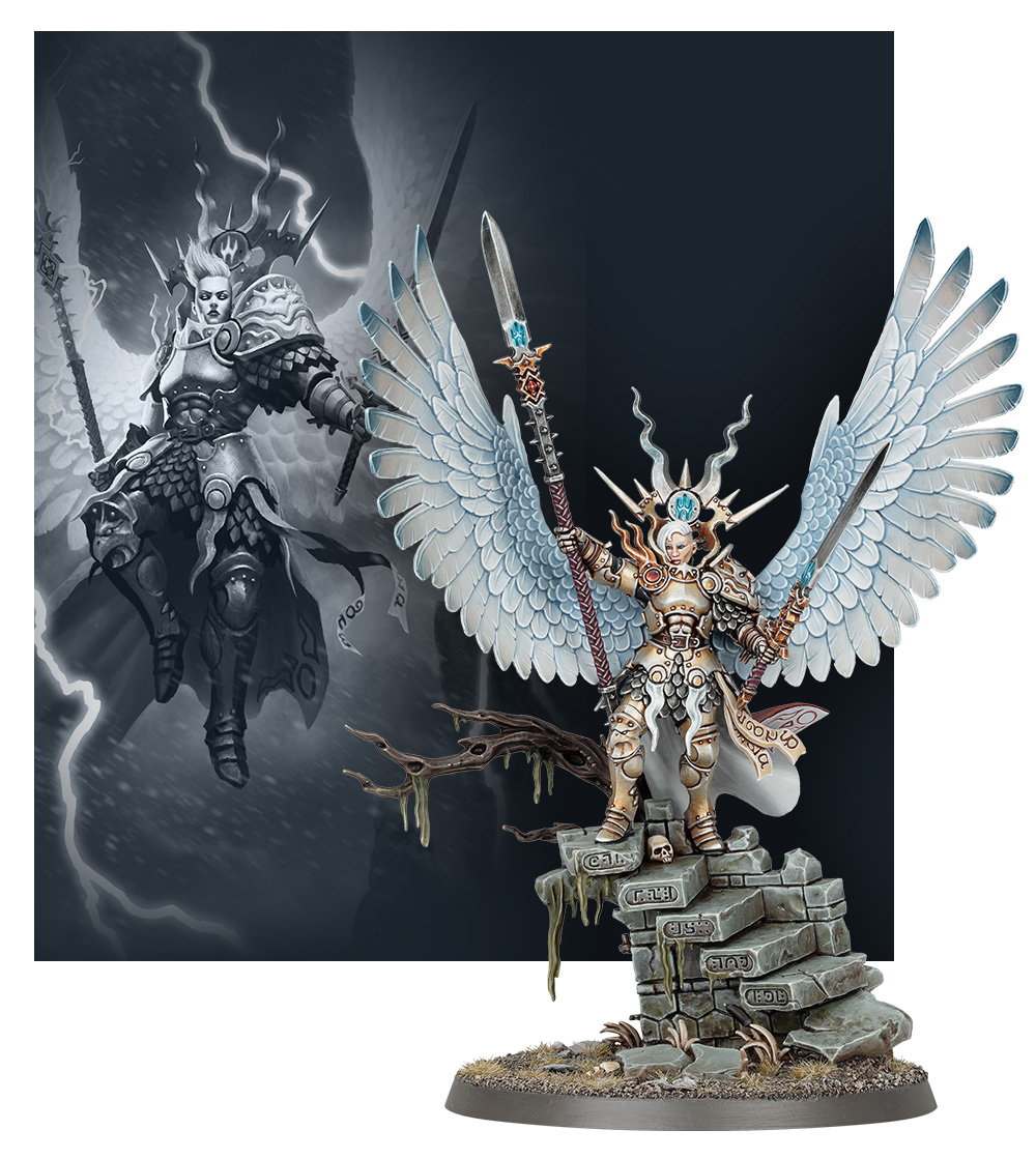First up is Yndrasta, the Celestial Spear. She is Sigmar’s monster hunter and a near-mythic winged warrior. And she has centuries of titan slaying victories behind her.