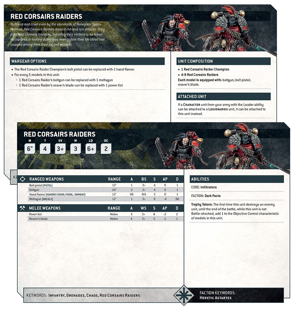 Red Corsairs Raiders are built to hit early and stick. First, they deploy forward with the Infiltrators rule. Then, they squat on No Man’s Land objectives with an OC of 2. However, they are not the “please ignore me” kind of vanguard unit. Instead, they want a scrap, and they get even better at securing loot after they score a fresh kill. So, the unit rewards you for playing aggressive once they are in position.