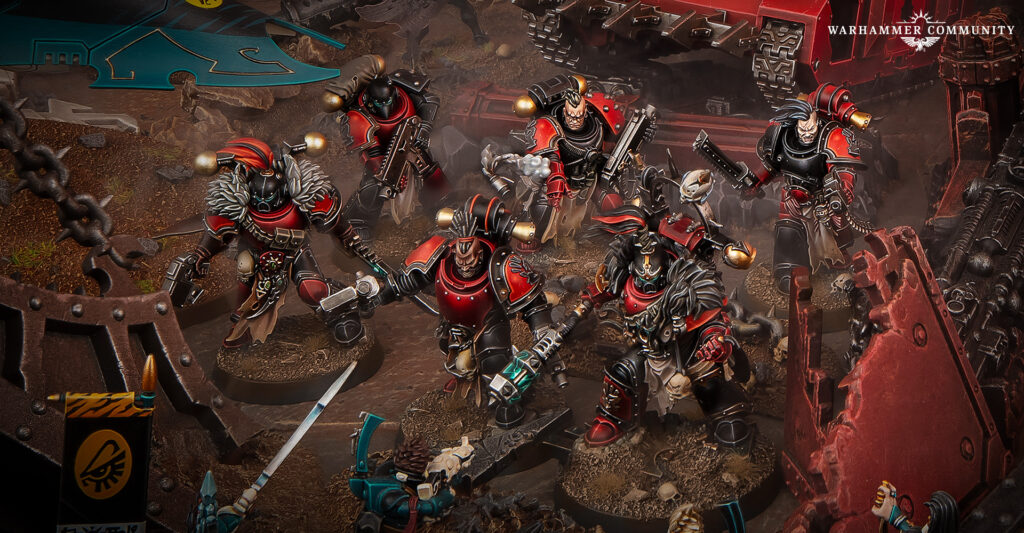 Bigger raiding parties usually roll with a Reave-Captain. Unfortunately, his job is herding maniacs, or Huron hears about it. That pressure cooker builds a Brutal Raider mindset, which means chaining charges from one melee to the next. Meanwhile, the Captain still has that Astartes tactical brain under the spite.
