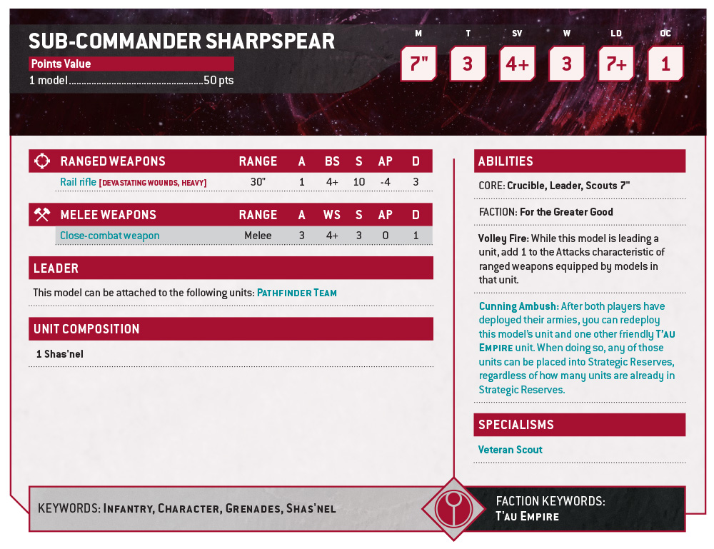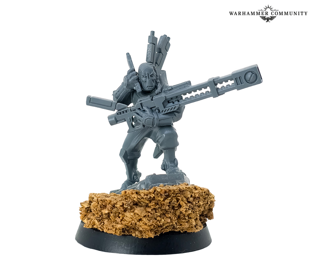 Rob saw the book and got giddy, which feels relatable. So, he built a new T’au leader for Pathfinders, because Darkstrider cannot be everywhere. He used the Shas’nel archetype with Veteran Scout, then kitbashed Darkstrider and Pathfinder bits. Meanwhile, a cork wedge fixed Darkstrider’s forward lean.