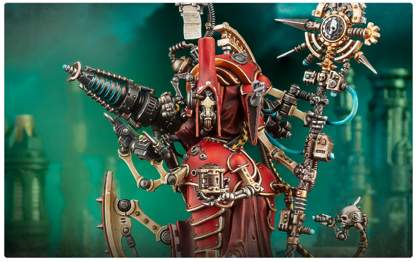 Dominus level Tech Priests specialize, and Ghuld specializes in war. She is a veteran of the Ordo Reductor, the Adeptus Mechanicus subcult that venerates the Omnissiah as destruction made holy. Over centuries, she rebuilt herself into a towering engine of blessed steel and aging flesh. Moreover, she believes the Machine God made her the perfect instrument for efficient warfare.