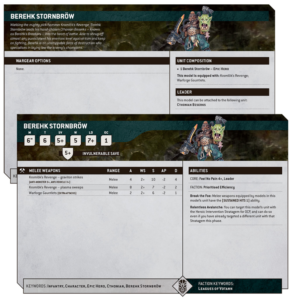 Overall, this preview frames Berehk Stornbröw as the Leagues of Votann specialist for cracking monsters, vehicles, and loudmouth champions. Moreover, his durability plus unit buffs create a nasty midfield threat that punishes sloppy positioning. Consequently, he looks less like a lone hero and more like the fuse on a Beserk bomb. If you love decisive melee deterrents, this datasheet is worth your attention, as described in the Warhammer Community preview.