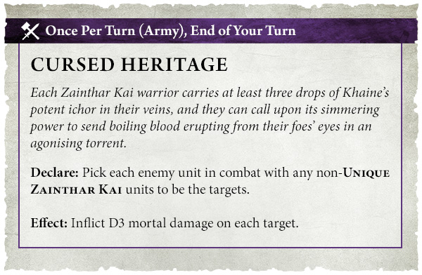 The rules article is short, though it packs in two very different play fantasies. First, Zainthar Kai is Morathi’s personal murder club, and it must be led by Morathi-Khaine and the Shadow Queen. Moreover, it pulls from the Scáthborn side of the range, including Melusai Ironscales, Blood Sisters, Blood Stalkers, Khinerai, Bloodwrack Medusae, and Bloodwrack Shrines.