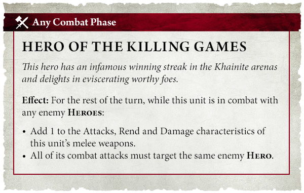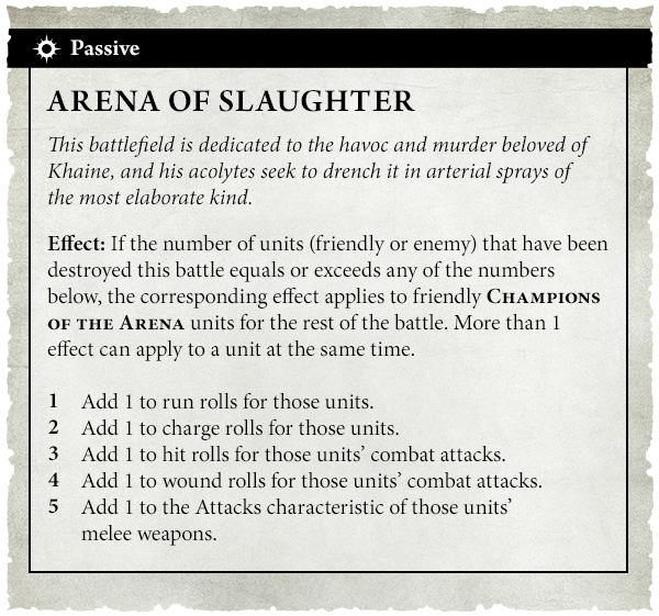 Arena of Slaughter then stacks buffs as units die, granting better run rolls, charge rolls, hit rolls, wound rolls, and eventually extra attacks.