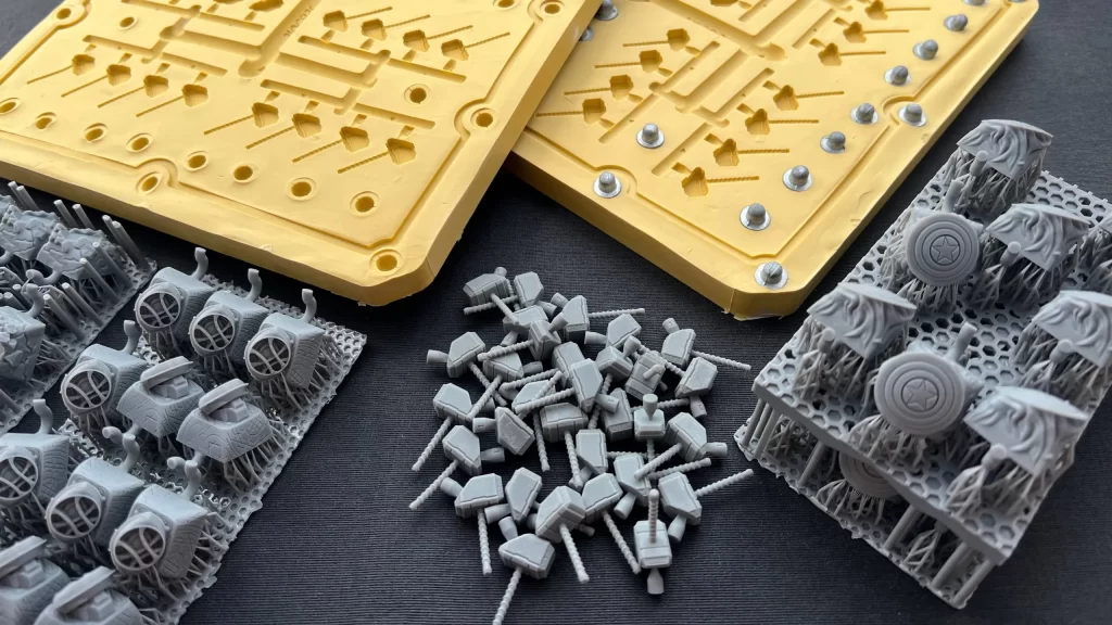 Let’s talk briefly about what SioCast is and how it is different than traditional plastic and metal casting. The reason smaller manufacturers tend to 3D print or cast in metal is because it is relatively cheap and easy to do. A 3D or hand sculpted model can be put into a rubber mold which is then baked to make it hold its shape. These molds break down over time, but they do fine for smaller companies, and they can be remade if need be. This is what GW is doing with a lot of their Made To Order releases. Plastic Injection molding is much more expensive up front but can be a lot more profitable in the long run. Making a plastic injection mold is a very time consuming and involved process that results in a steel mold that will last far longer than a rubber mold and can stand up to the extreme heat and pressure of having liquid plastic shot into it. SioCast is a hybrid system that uses silicone rubber molds and shoots thermoplastic resin.