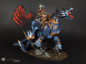 We painted this Lord-Arcanum on Tauralon models for a client. This hunky jock on flying donkeysaurus is well based and a great addition