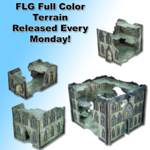 Our full color terrain is back in stock! This week, we have a limited number of our Gothic Ruins Complete Set available. Every Monday