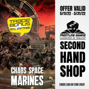 We are offering an additional 10% bonus trade-in credit for Chaos Space Marines, Chaos Knights and Imperial Knights through the end of May! Please click here and follow the