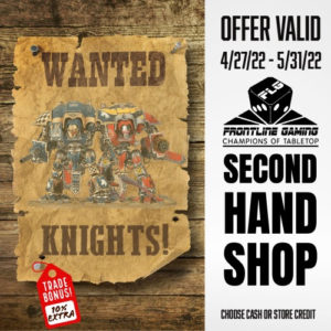 We are offering an additional 10% bonus trade-in credit for Chaos Knights and Imperial Knights through the end of May! Please click here and follow the directions to