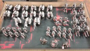 Junior A. brought this awesome Necron army with red effects and black basing to a tournament recently and it was