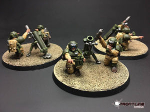 These Cadian Mortar Teams are painted to a Tabletop Standard with level 1 basing.