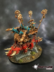 This gorgeous Seraphon army was painted by the FLG Paint Studio.