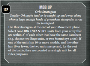 Greetings fellow Warbosses. Jason “Doc” Rogers here to talk about the new Mob Up stratagem for Orks. Check the Tactics Corner