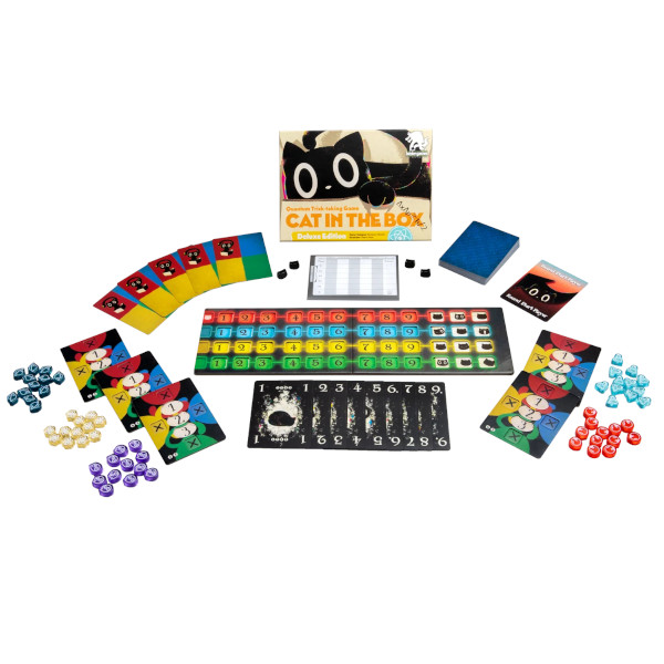 Cat in the Box, designed by Muneyuki Yokouchi and published by Bézier Games, is a trick-taking card game that introduces a quantum twist to traditional mechanics.