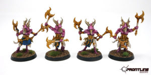 We painted this unit of Tzaangors for a client’s Chaos army.