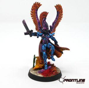 This beautiful Eldar Autarch with wings was painted to a Tabletop Plus standard by the FLG Paint Studio.
