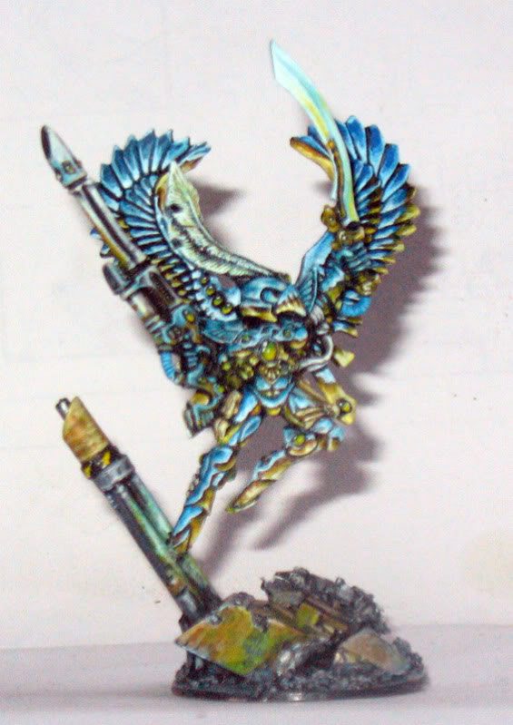 That guy with the crappy gun and ap3 close combat weapon that adds pretty much nothing to the aspect he exemplifies? A swooping hawk Exarch can get a 3 shot, blinding, ap3 gun and hit and run and you really want swooping hawks in combat? and compared to a Farseer he doesn’t add a lot of buff to the army on killer units like Warpspiders or guardian blobs.