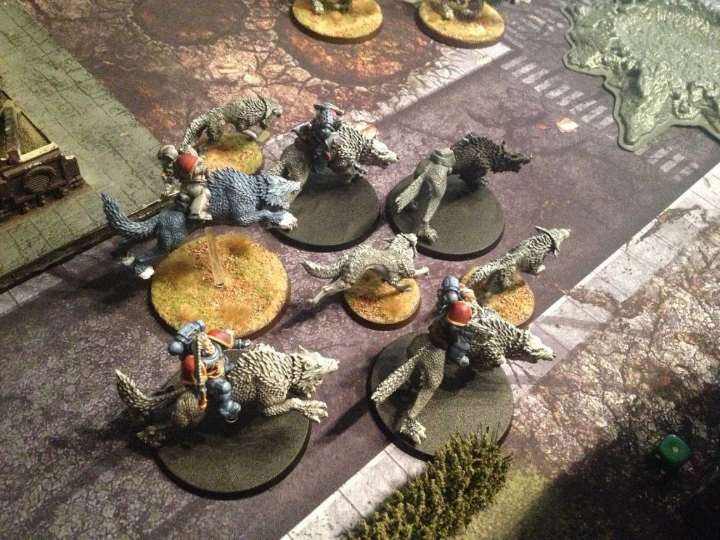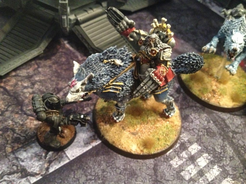 The Thunderwolf Cavalry with the Iron Priest (proxied with the raider-less wolf)