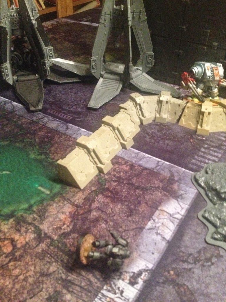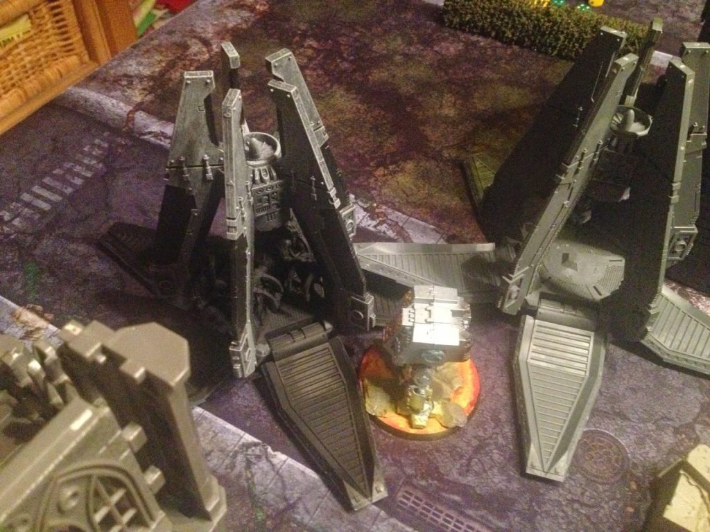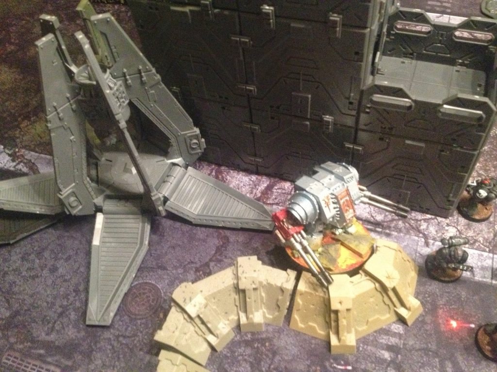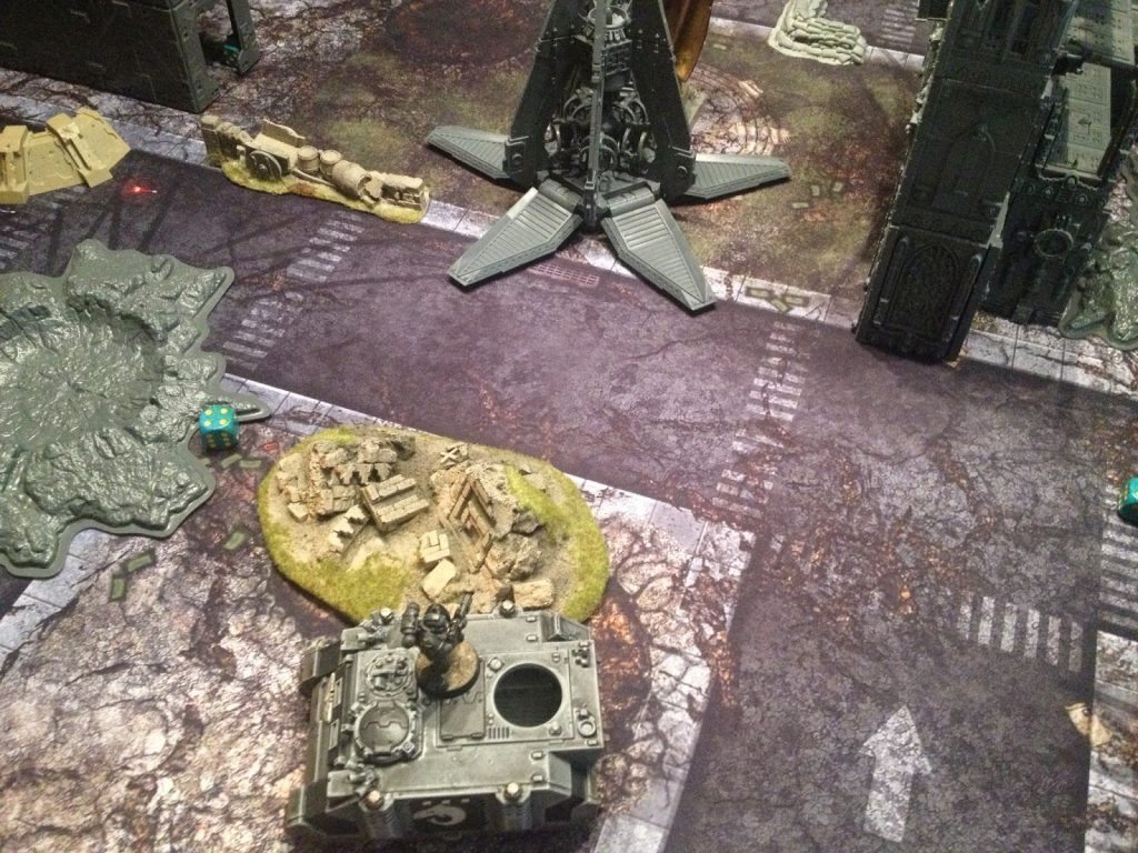 The arm-less Murderfang tries to destroy a Drop Pod, for another Kp.