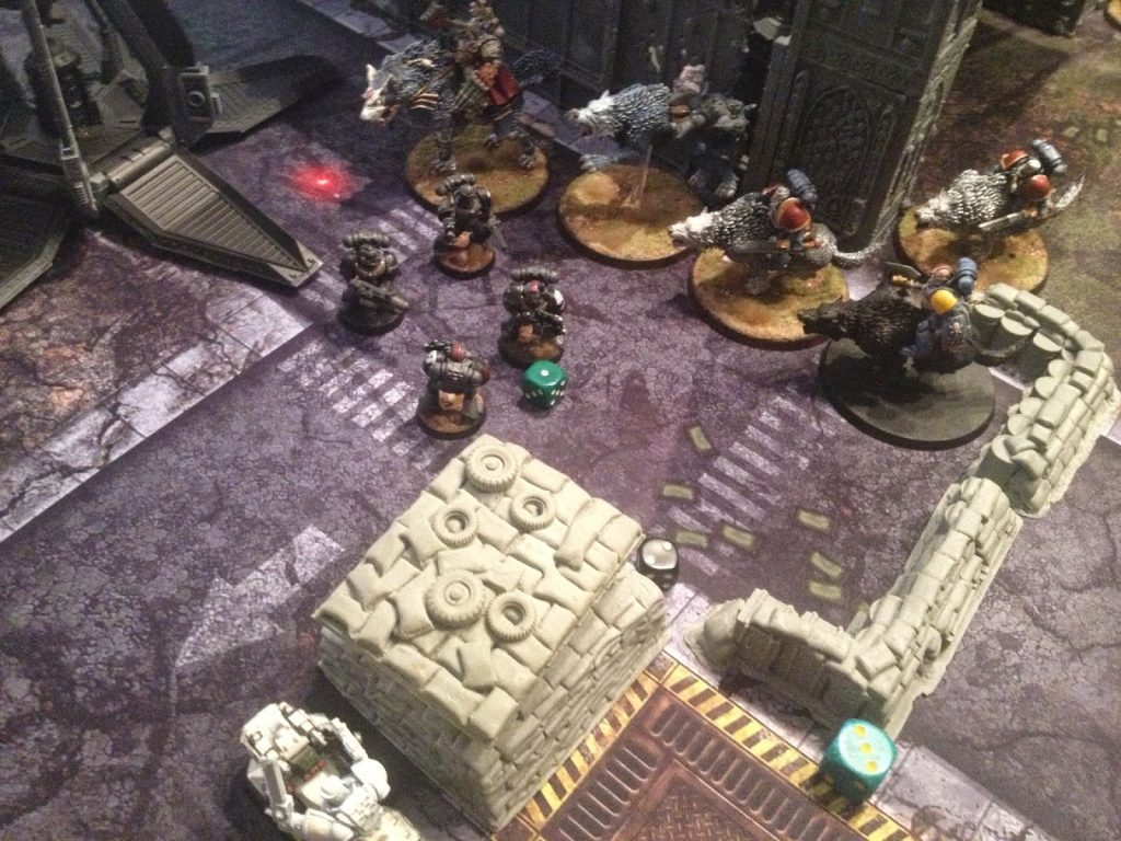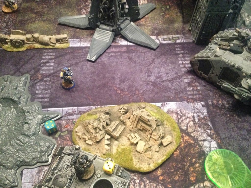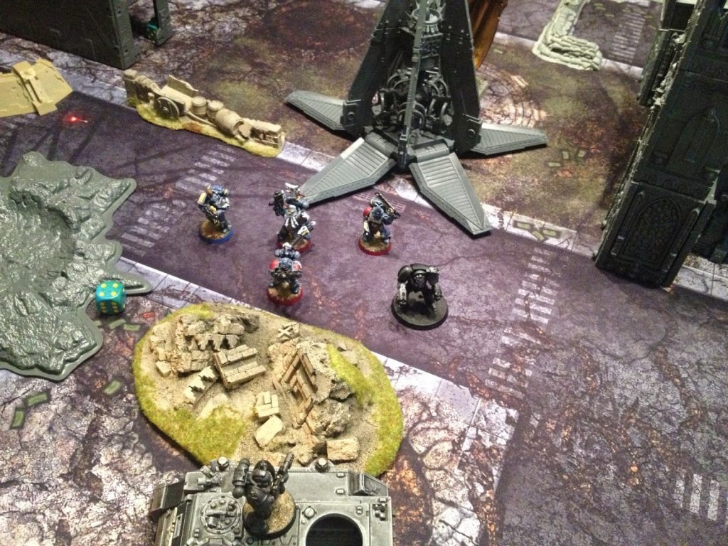 The Thunderwolves finish off the 2 marines, and consolidate into Objective 1.