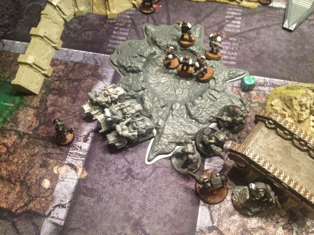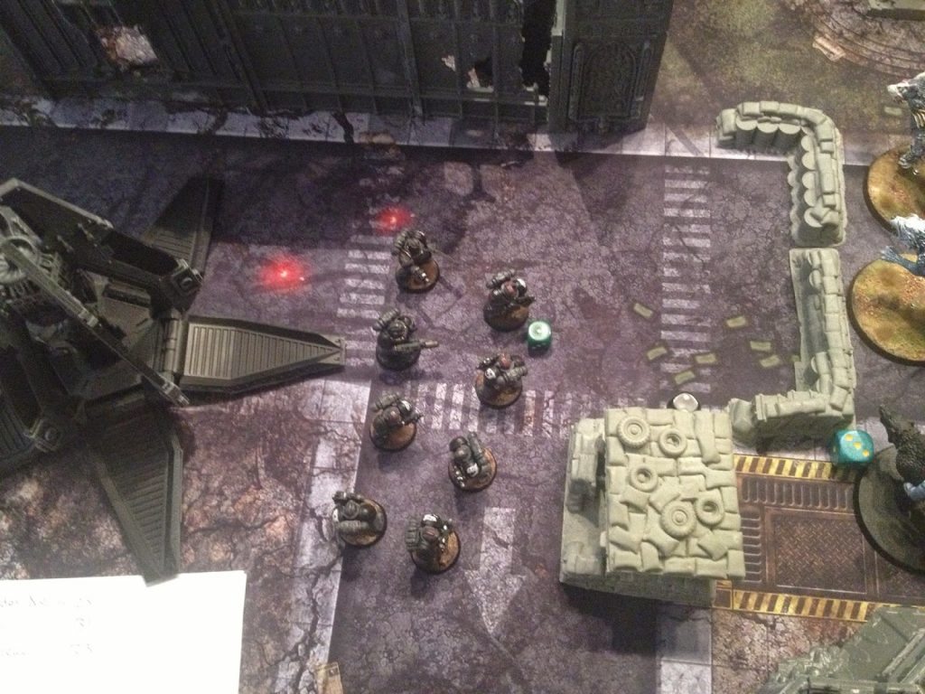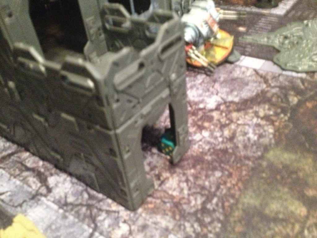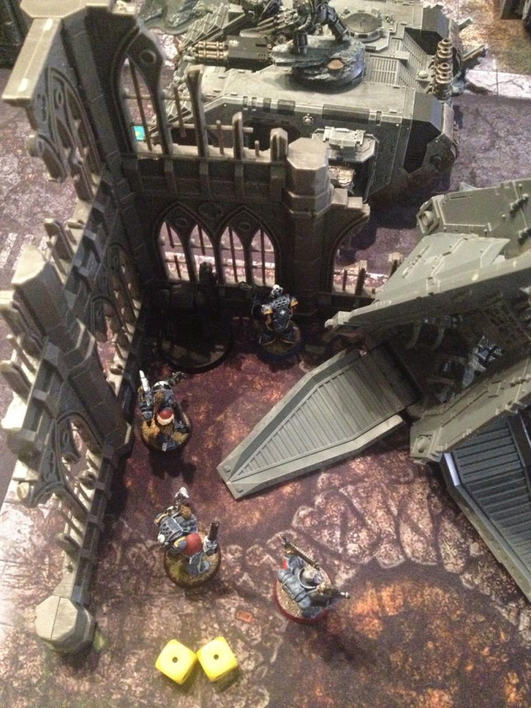 His Grey Hunters get inside the ruin, and the 2 meltaguns get closet o the windows for a clear shot.