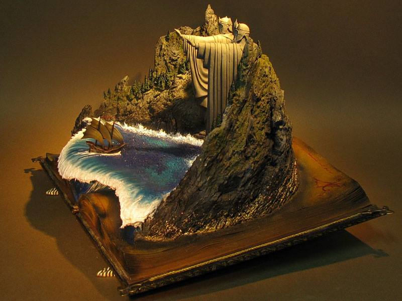 Stumbled upon this little beautie! (and my jaw hit the floor!) A diorama from LOTR is 40x28cm and the scale is 65mm. The piece, named “The Guardians”, was created by Alexander Krasnov from Ukraine. I love the fact that its on a book, really great effort!