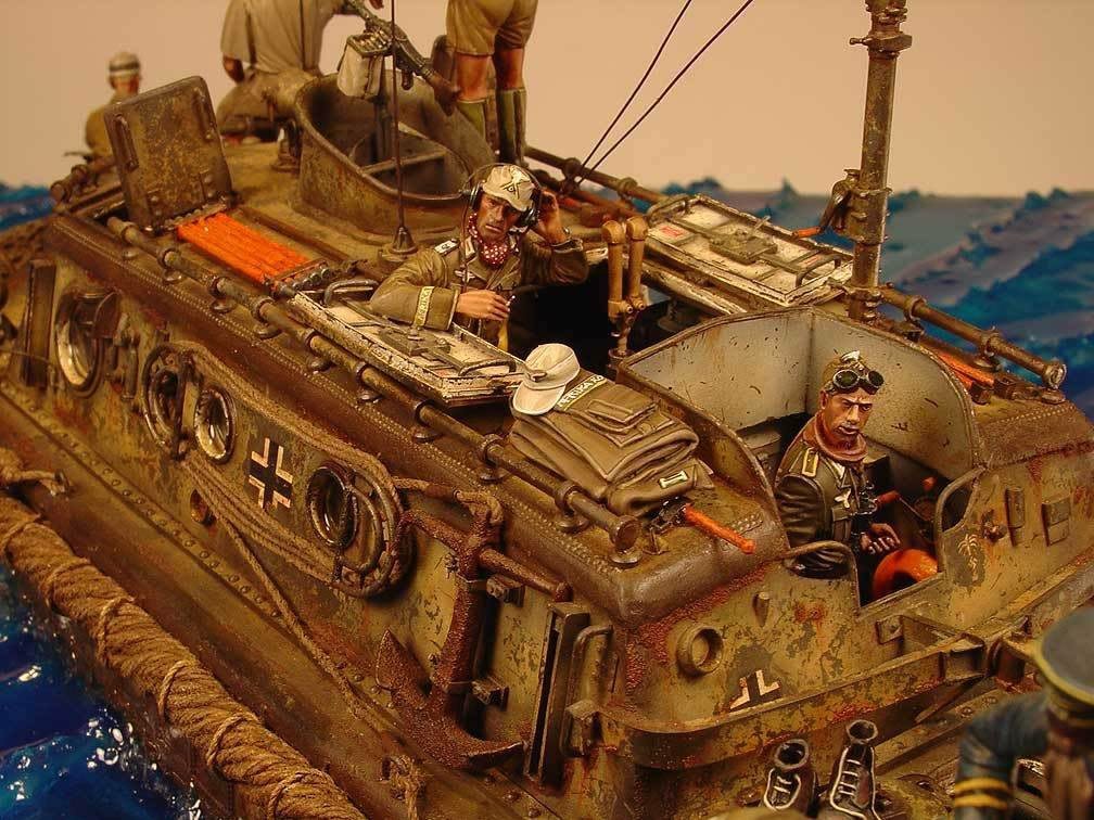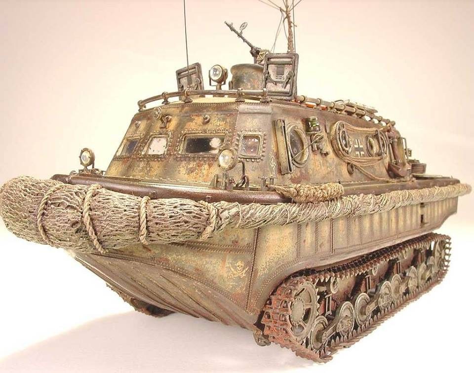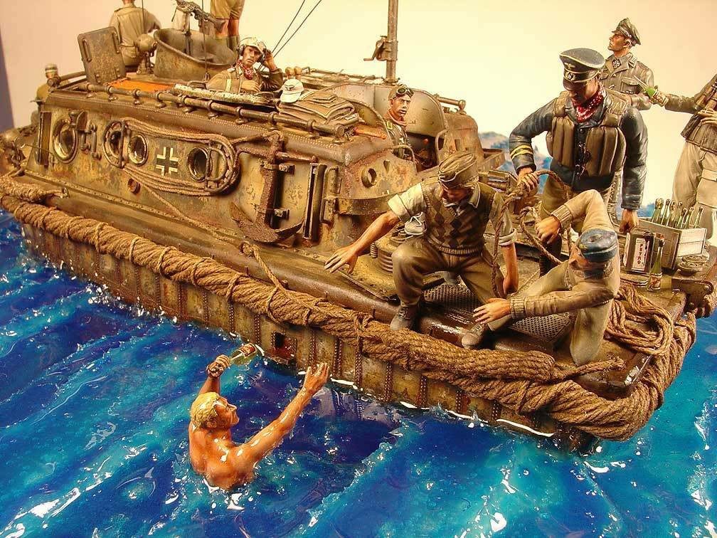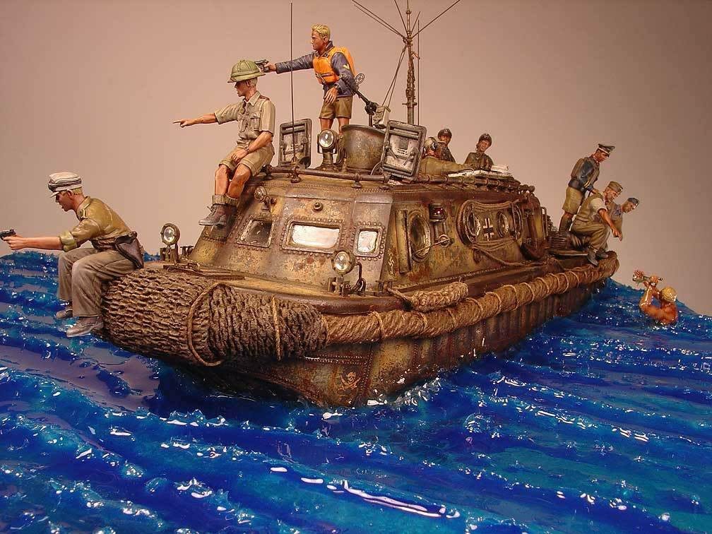 Conversion of the Day Rantimus 7 years ago Herr Hauptman’s Champagne” – a really fantastic Diorama by Rhodes Williams featuring a LWS ( Land-Wasser-Schlepper ) – Superb Modeling !!! http://miniscaping.com/