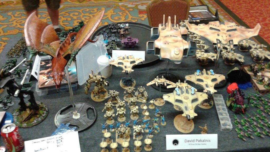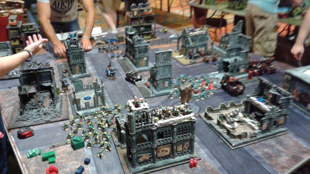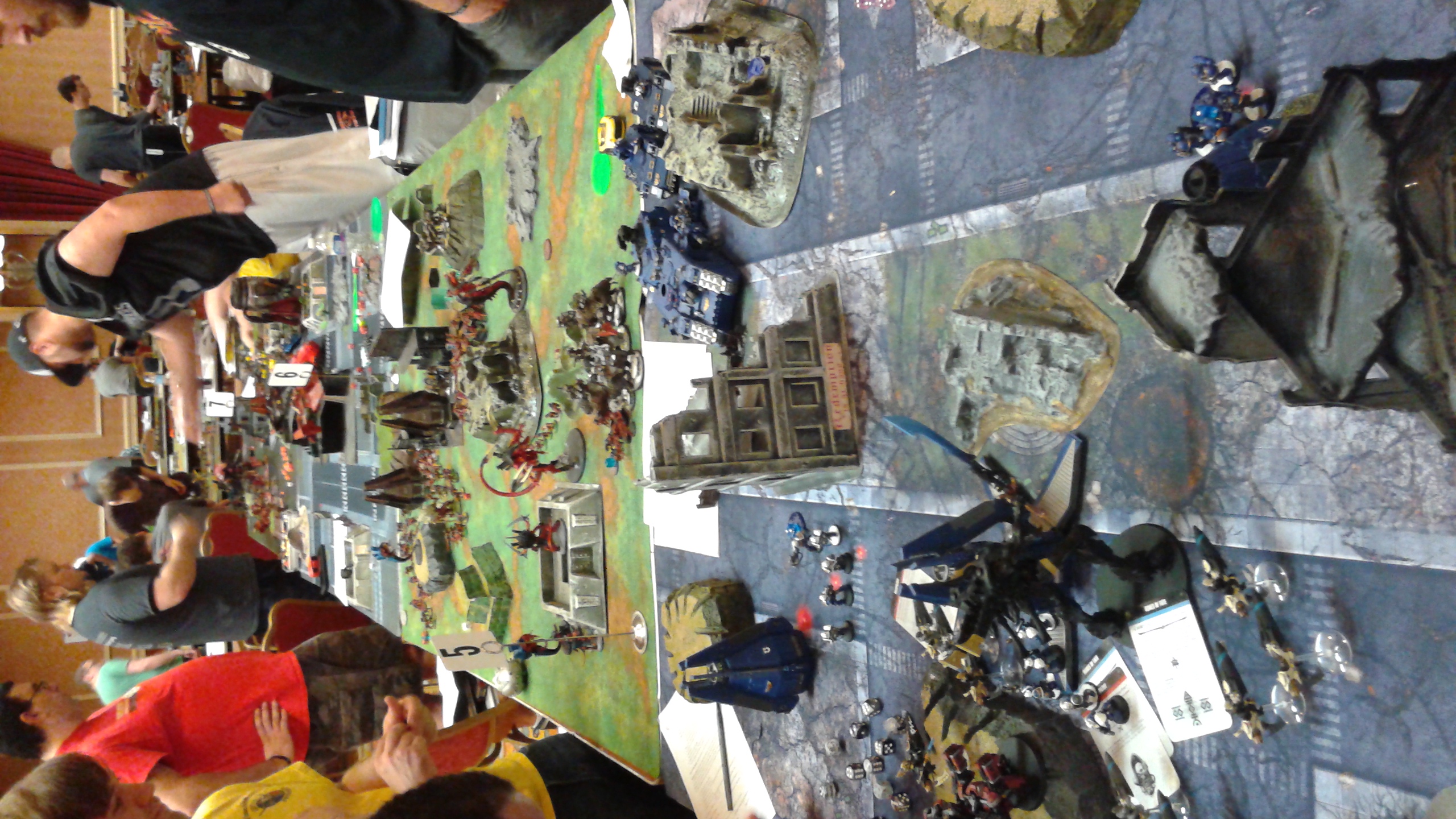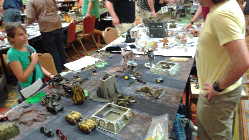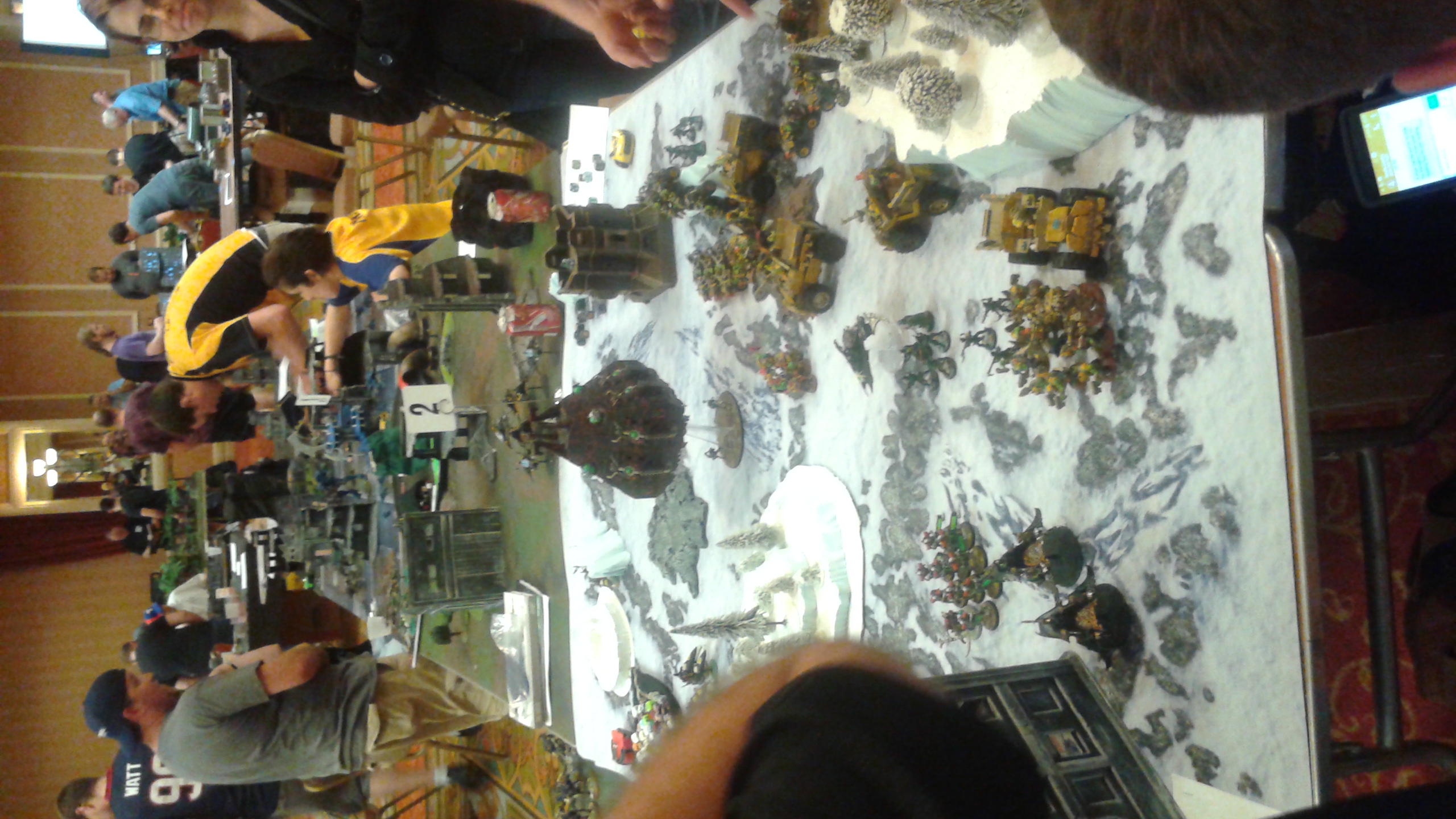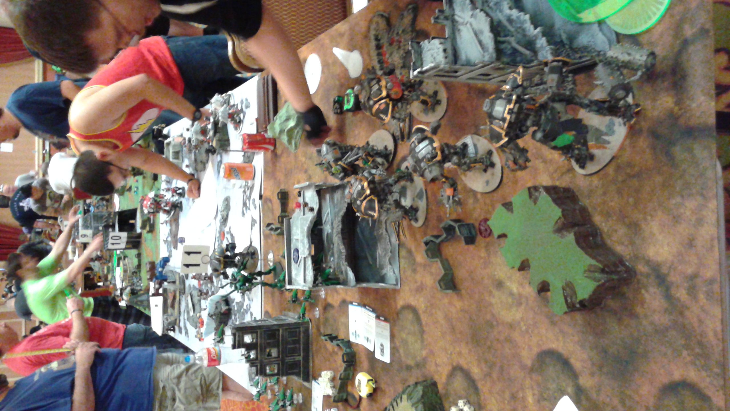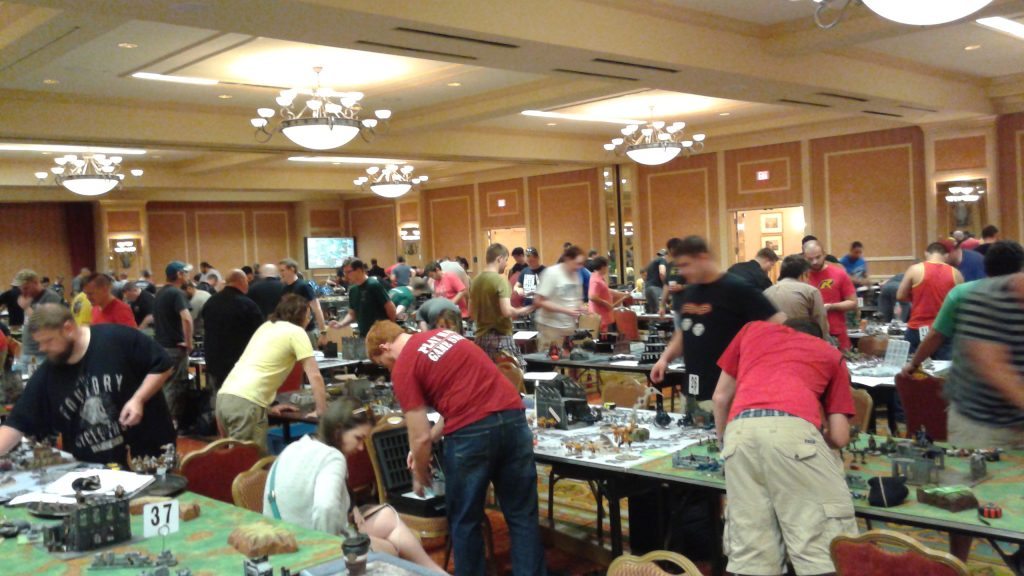 We’ve got a full house, today, nearly every table is filled. Warmachine ran late into the night with the master and Iron Arena, and today we’ve got the 40k champs kicking off. A ton of great players are throwing down and having a good time. The Flames of War Nationals event is going strong and the 40k Narrative is quite a spectacle with absolutely incredible, cinematic tables. The X-Wing event is going strong too, with some giant ships taking to the tables. More updates to come!